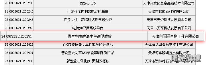 近日,從國家科技部傳來好消息:天津市康婷生物工程有限公司2009年申報的《微生物發酵法生產透明質酸》項目順利通過國家科技部項目驗收,共獲得無償資助70萬元。這是康婷公司繼2011年通過天津市創新基金項目驗收之后再次通過國家創新基金驗收的項目,也是全國發酵法生產透明質酸唯一獲此榮譽的項目。