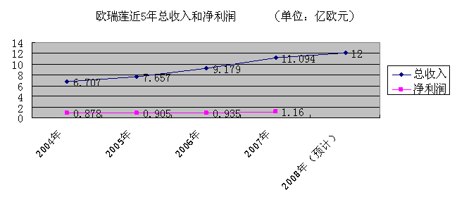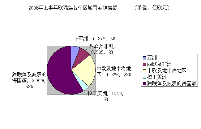 2008上半年,按照當地貨幣計算,歐瑞蓮銷售收入同比增長24%,按照歐元計算則增長了18%,達到了6.352億歐元(去年同期為5.382億歐元)。公司預估,以當地貨幣計算,2008年銷售增長將超過15%(去年同期為11.094億歐元)。