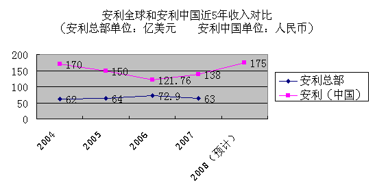 而據2008年1月安利副總裁陳朝龍接受媒體訪問時的表態,“由于安利今年在重點城市推廣的人才培訓項目,以及低耗能‘皇后鍋具’的公開銷售。今年安利(中國)業績增長將達雙位數! 保守估計,安利今年上半年業績在80億元人民幣左右。全年預計175億元人民幣。