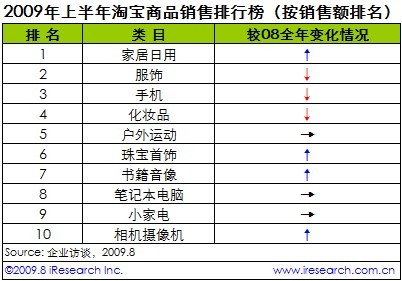 艾瑞咨詢研究發(fā)現(xiàn),09年家居日用類商品成為網購的新寵,以淘寶銷售額排名數據為例,家居日用商品已超越服飾、手機、化妝品成為09上半年淘寶交易額最高的商品品類。消費者開始在網絡上購買日常消費品,表明網絡在居民購物渠道中的作用日益突出。