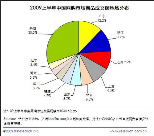 艾瑞咨詢近日發(fā)布了《2009年上半年中國網絡購物市場發(fā)展報告》,數據顯示,在2009年上半年,中國網絡購物市場達到了1034.6億,首次突破千億大關。