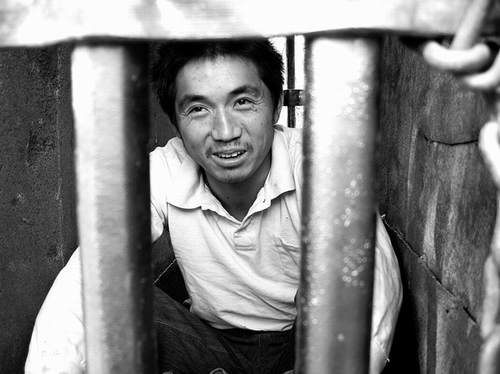 看有人走過來,李華山坐了起來,并向記者打招呼。于是,記者走近他,隔著鐵籠子和他聊了起來。