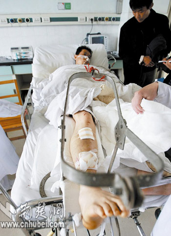 陳福祥說,小徐當時傷情嚴重,該院為其進行了骨折部位固定手術,4位醫生還湊了500元錢,當晚將其轉至省武警醫院。省武警醫院也開通“綠色通道”緊急救助。目前小徐已暫時脫離生命危險,其家人也已趕到武漢。
