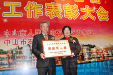 3月27日晚,中山市石岐區辦事處“2010年春茗暨經濟工作表彰大會”在金鉆酒店隆重舉行,對全區經濟發展做出突出貢獻的企業(單位)進行表彰,并給予重獎。中山市市委副書記、市長李啟紅,石岐區黨工委副書記、辦事處主任甘健仁等領導出席會議,并向獲獎企業頒獎。