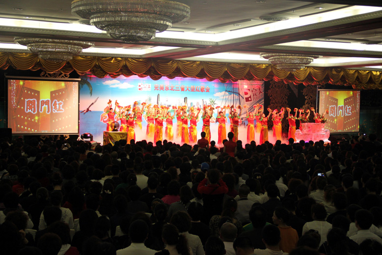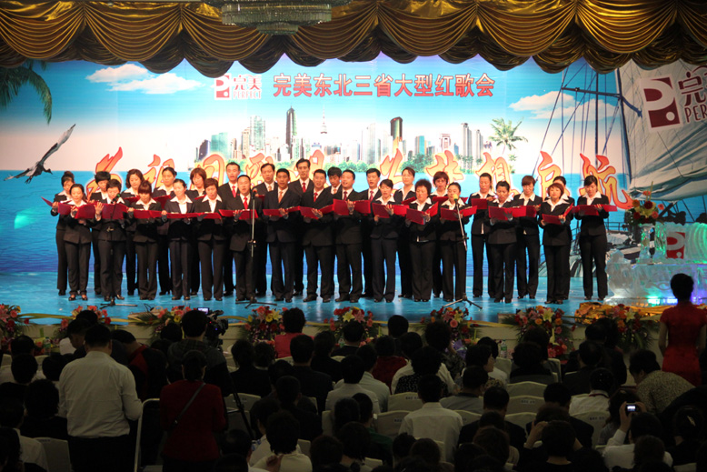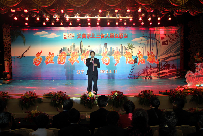 首先,由完美遼寧分公司鄭鐵良高級經理致歡迎辭。鄭經理首先對胡總裁以及東北三省完美伙伴的到來表示歡迎,對胡總裁給予東北三省的厚愛表示誠摯的感謝,并且代表全場完美伙伴,以傳統文化的禮儀,向胡總裁深深地鞠一躬!接著,鄭經理介紹了此次活動的舉辦目的:通過唱紅歌,表達對祖國母親的熱愛,同時為即將遠赴夏威夷的7位資深客戶總監和暢游寶島臺灣的326位完美伙伴表示祝賀。隨后,鄭經理對總公司的支持表示感謝,并號召東北三省的完美朋友們緊緊跟隨總公司腳步,精誠團結,和諧共進,為東北三省的大發展、大突破、大跨越,為實現“百年完美,全球完美”做出我們應有的貢獻!