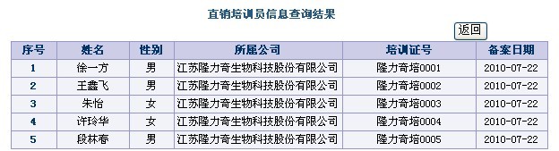 筆者從商務(wù)部直銷行業(yè)管理信息系統(tǒng)上獲悉,江蘇隆力奇生物科技股份有限公司第一批共5名直銷培訓(xùn)員誕生,這是商務(wù)部直銷行業(yè)管理信息系統(tǒng)自2009年7月22日公布隆力奇獲牌后首次公布其直銷培訓(xùn)員信息。