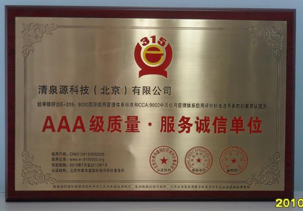熱烈祝賀清泉源科技(北京)有限公司執行董事、總經理鐘輝先生被評為“中國誠信企業家”,清泉源科技(北京)有限公司被評為AAA級質量服務誠信單位。