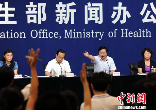 8月15日,衛生部召開新聞發布會,通報“圣元乳粉疑致兒童性早熟”調查結果。通報指出,圣元奶粉中未檢出外源性性激素,內源性性激素檢測結果符合國內外文獻報道的含量范圍。也就是意味著,不能證明此前報道的“女嬰性早熟”與圣元奶粉有關。中新社發 劉震 攝