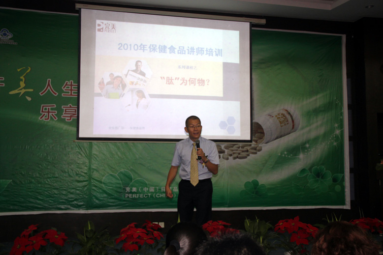 8月11日至12日,完美山東地區首屆保健食品講師培訓在濰坊溫泉大酒店隆重舉行,來自全省各地的講師以及咨詢委員會委員參加了此次活動。本次培訓特別邀請了山東地區講師俆春波、總公司保健品咨詢委員會委員杜照平、總公司美容咨詢委員會委員宋金梅、山東講師李衛東擔任主講嘉賓,幾位總監不顧旅途辛勞,精心準備了本次培訓內容。