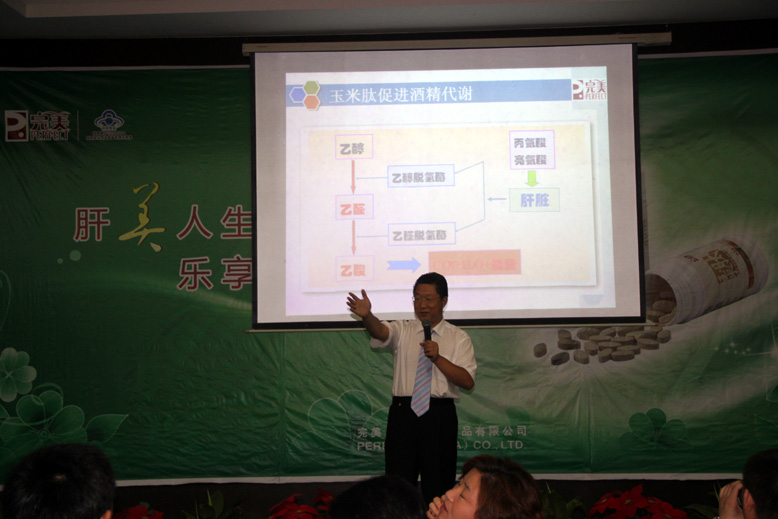 本次課程主要圍繞玉米肽糙米胚芽片展開授課。首先是徐總監為大家講解了“肽為何物?”以及公司的新產品,俆總監風趣、幽默而又不失嚴謹的授課方式贏得了學員們陣陣掌聲;杜照平總監激情洋溢地為大家帶來了“玉米低聚肽”。李衛東總監在后面的課程中向大家講解了肝臟的功能重要性及玉米肽其他成份介紹,讓與會者更明白 肝臟的功能及危害肝臟健康的一些危險因素。在問題答疑環節,四位總監現場為各位學員解答了很多學員在市場上遇到的問題。