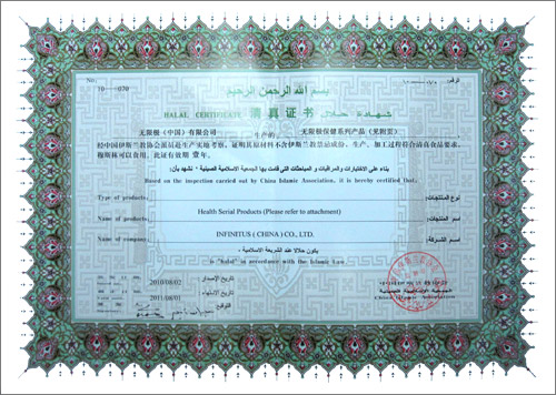 經(jīng)中國伊斯蘭教協(xié)會派員赴新會生產(chǎn)基地實地考察通過,近日,無限極公司增健口服液等多款產(chǎn)品,獲得中國伊斯蘭教協(xié)會頒發(fā)的清真證書,可供穆斯林民眾食用。