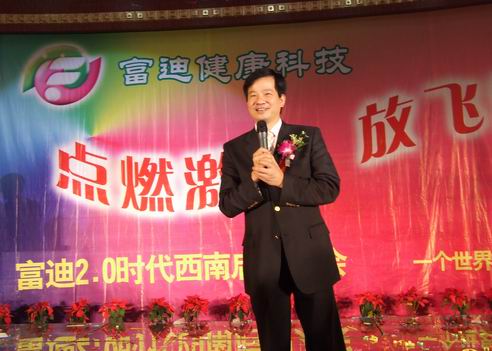 陳懷德先生一聲“早上好”,迎來啟動大會高潮,據陳懷德先生表示,讓眾人“嘲笑”富迪單一產品時在12月前突破30種。同時強調富迪高層已經沒有任何問題,甚至更牢固,富迪這幾月沉默時,專攻收購,中山制造廠、廣州五星級大酒店、美國電視臺等都已成為富迪旗下的產業(yè)。并承諾2010年年會,專為優(yōu)秀經銷商送出10輛法拉利和百輛奔馳。