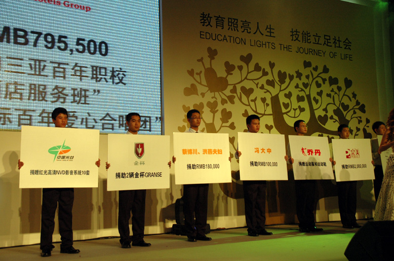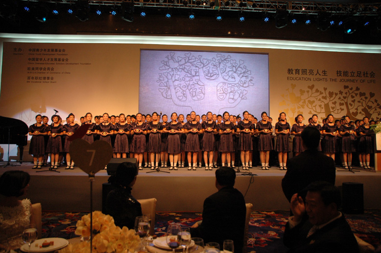 最終,在參會嘉賓及各界愛心人士的共同努力下,慈善晚宴募捐總額為人民幣24,629,866元、港幣1,000,000元、美元98,415元、歐元17,500元。晚宴全部捐款由中國青少年發展基金會受理,定向撥付“希望工程職業教育助學計劃”實施學校——百年職校,用于為貧困農民工子女和貧困農民子女提供免費職業教育。自2009年以來,百年職校開始復制和推廣公益職業教育的辦學模式,至今為止,已在北京、成都、鄭州、武漢、三亞、南京、麗江等地建立百年職校,為中國貧困農民家庭提供免費職業教育,解決其子女的就業問題。