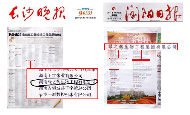 2010年3月10日,長沙國家生物產業基地經濟工作會議在瀏陽市行政中心隆重召開。中共長沙市委常委、瀏陽市委書記易佳良、長沙市人民政府副市長何寄華、湖南省科技廳副廳長羅亞軍等省市級政府領導出席會議并發表重要講話。綠之韻集團榮獲“2010年度稅收過千萬企業”“經營創新獎”“目標管理一等獎”“統計工作先進單位” 多項殊榮;綠之韻迪博制藥有限公司在2010年獲評“湖南省著名商標”獲得“名牌產品獎”。綠之韻員工陳英、易利群榮獲“2010年度統計工作先進個人”。綠之韻集團董事長胡國安出席領獎并接受產業基地下達的2011年目標管理任務書。