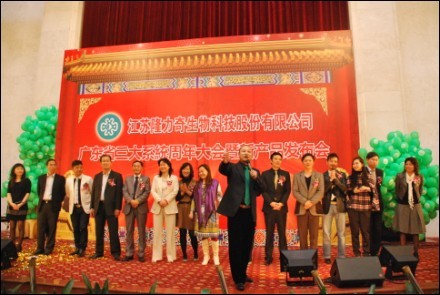 2011年4月1日下午,廣州番禺四星級永成大酒店人潮涌動,載歌載舞,掌聲、歡呼聲不絕于耳。隆力奇定制營銷全球執(zhí)行總裁錢港基先生、廣東分公司總經(jīng)理盧曉紅女士、三星董事張博川先生,以及廣東三大系統(tǒng)(新創(chuàng)裔系統(tǒng)、隆運系統(tǒng)、浚星系統(tǒng))創(chuàng)始人羅玉枚、游淑軍、陳浩斌攜1000多名經(jīng)銷商歡聚一堂,歡度廣東三大系統(tǒng)周年慶典。同時在會上介紹了新產(chǎn)品“神奇鍋”。