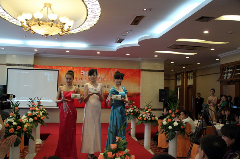 隨著動感時尚音樂的響起,青春靚麗的模特們手持完美牌健揚膠囊出場。一曲悠揚的《花樣年華》將我們帶入了唯美的境界,云想衣裳花想容是每個女人的夢想,洋溢青春笑顏的模特為愛美的女士奉上了丹參阿膠珍珠膠囊。隨著音樂的不斷變化,模特手持低聚果糖沙棘茶、完美一生糖風情萬種的呈現在了我們的面前, 原來的茶和糖世界也可以如此與眾不同,讓我們在品味生活的同時還可暢享健康。最后,我們期待已久的完美紅葡萄酒隆重登場了。美酒佳人相互輝映,完美紅我們為你而陶醉。