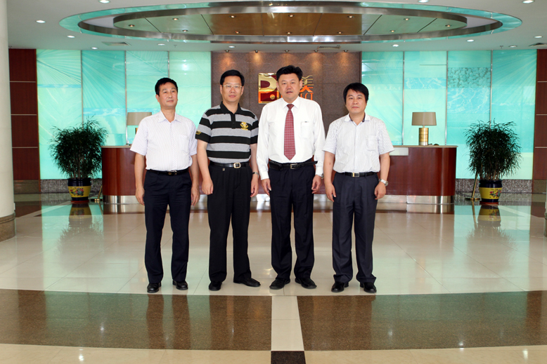 | 顏總與朱勤虎副局長(zhǎng)(右二)等領(lǐng)導(dǎo)合影 | 領(lǐng)導(dǎo)一行參觀保健食品廠 | 顏總向領(lǐng)導(dǎo)們介紹公司檢測(cè)中心 |