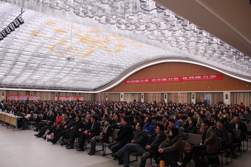 下午兩點,在激昂的音樂中,王藝霏女士及系統核心領導人一一入場與家人們見面,王藝霏女士為本次大會致辭,感謝恒輝的事業伙伴們在過去一年多的時間里對系統的認可與支持,同時也對2012年系統的整體市場規劃做了詳細的說明。