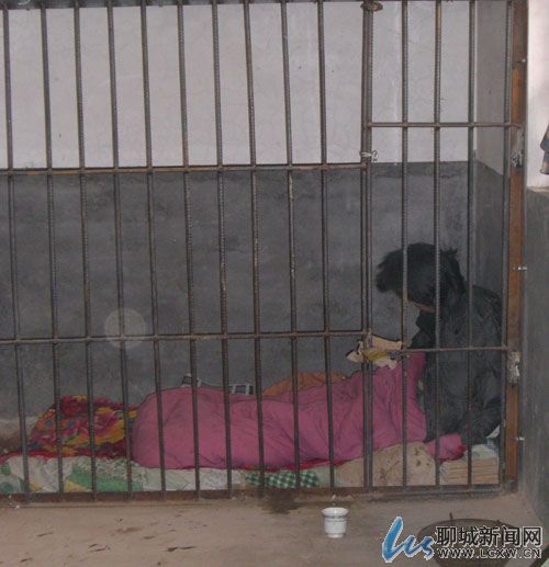 一個(gè)陰暗的房間,窗戶上沒(méi)有一塊完整的玻璃,里面的東西也很簡(jiǎn)陋,一條板凳,一張桌子,角落里還零散地堆放著一些廢舊物品。屋子的最南邊,有一個(gè)不到3平方米的鐵籠,里面鋪著一床破舊的褥子,上面坐著一名男子,他的身上,蓋著一床同樣破舊的被子,旁邊則是一堆燒剩下的煤球渣。半年來(lái),這名男子的活動(dòng)范圍就在這個(gè)不到3平方米的鐵籠子里。