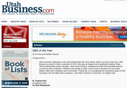 美國〝猶他商業雜志〞每年評選〝年度執行長〞,以表揚在艱困時期展現領導能力,帶領公司創造卓越成就的執行長。該雜志表揚的執行長涵蓋各產業,包含政府機關和民間企業。曾獲得這項殊榮的公司包括Overstock.com、Merit Medical Systems、SelectHealth、和Associated Foods Stores。