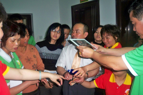 在廉江市人民公園,劉師伯結合中醫經絡養生學為1000多人的健身隊伍講解了富迪產品對某些病例的調理功效,并當場示范了刮痧片、刮痧精油、掌灸精油、水機等產品的使用方法。除此,他還在富迪廉江養生館進行兩天半的義診,為幾百名患者免費針灸。之后,他還抽時間培訓廉江的富迪家人,培訓現場氣氛熱烈非凡。