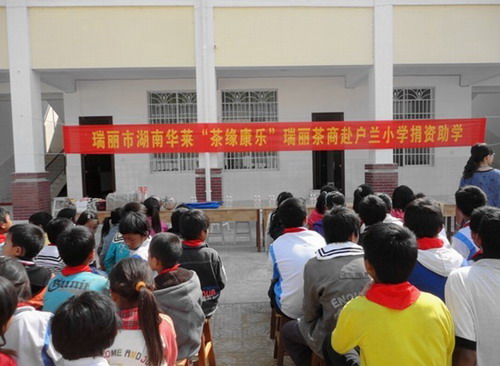 3月22日,湖南華萊云南省瑞麗市場的十幾位茶商代表,攜手共赴位于猛秀鄉的戶蘭村希望小學,開展捐資助學獻愛心活動。當地的鄉領導和校領導熱情接待了茶商代表一行。