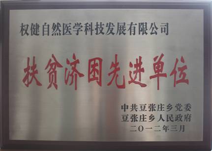 2012年3月,天津市武清區豆張莊鄉人民政府為表彰權健在扶危濟困方面做出的突出貢獻,特別頒發了“扶貧濟困先進單位”榮譽獎牌。
