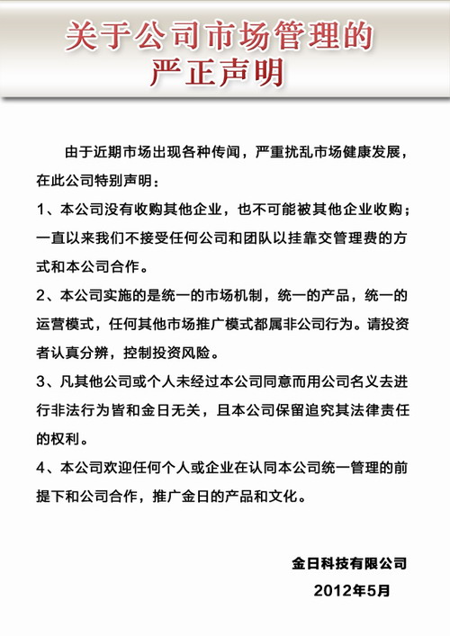 金日發(fā)聲明 不接受公司團(tuán)隊(duì)以掛靠方式合作