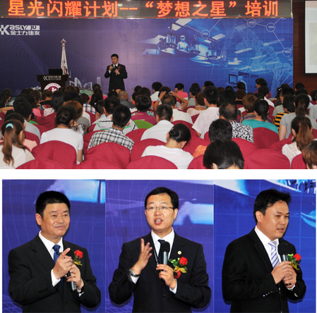 “夢想之星”培訓(xùn)作為星光閃耀計劃的第一階段,其目的是讓學(xué)員正確理解直銷創(chuàng)業(yè)的特點與內(nèi)涵,使學(xué)員對金士力佳友公司大健康事業(yè)的文化、產(chǎn)品及理念得到全面、系統(tǒng)、深入的了解,進(jìn)而使學(xué)員改變舊有觀念、激發(fā)創(chuàng)業(yè)動力、把握創(chuàng)業(yè)良機(jī)、增強創(chuàng)業(yè)信心實現(xiàn)創(chuàng)業(yè)夢想。2012年7月22日,金士力佳友第十六期“夢想之星”培訓(xùn)在津召開。