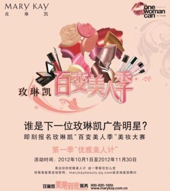 玫琳凱2012“百變美人季”美妝大賽是向全國女性開啟的“造星之旅”。選手們可通過網絡和落地活動參與比賽,大賽優勝者將有機會成為玫琳凱2013年的魅力廣告代言人。大賽設立了三個賽季,選手們將分別以“優雅”、“時尚”、“清新”為造型主題,詮釋“美麗”的不同意涵。大賽還特邀了護膚、美妝、造型方面的頂尖達人與選手們共度豪華培訓之旅,達人們將與選手們“親密接觸”,共游時尚之都,貼身傳授時尚“秘籍”。最終,各賽季的優勝選手將齊聚T臺,在聚光燈與掌聲的追隨下閃亮登場,為觀眾們奉獻一場華麗的玫琳凱“時尚盛宴”。同時,達人評審團、媒體評審團、玫琳凱品牌代表將與現場觀眾一起對選手的表現進行評分,共同見證10位“百變美人”誕生。大賽之后,“百變美人”們將赴海外接受培訓,全面提升護膚、美妝、造型等的能力,為成為玫琳凱2013年的魅力代言人做好充分準備。在海外培訓期間,優勝者還有機會受到當地頂尖時尚盛典的邀請,最近距離接觸全球時尚的絢爛舞臺。培訓之余,“百變美人”們還將暢游當地的時尚地標和文化景點,在海外時尚達人的指導下拍攝一組時尚大片。在異國風光的旋旎中留下自己的身影,升華對“美麗”的認知,記錄每個“心動時刻”。