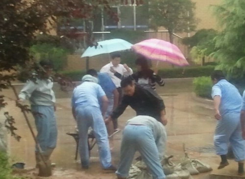 面對急風暴雨,洪水肆虐,公司全體員工彈奏了一曲抗洪搶險的團結贊歌。當日中午,眼見公司人工湖水位迅速飆升,已漫過湖沿,但雨勢卻無停止的跡象,此時已有進水的情況,員工也自發清理灌入的雨水,那日高層領導只有副總裁李總在公司,他也感到雨勢不妙,迅速察看公司各處險情,組織員工抗洪自救,受災最為嚴重的當屬物流部,倉庫男員工丁行知、紀謙鋒、章磊、毛瀟偉奮力保護倉庫包裝物料的安全,各位女員工丁桂娟大姐、徐修霞、丁磊也奮力掃水保護原材物料,甚至有的員工不惜扭傷了腰,但畢竟人少,暴雨傾盆而下仍造成積水,這時辦公樓的張士海、劉澤偉及生產員工毛功偉、秦敏等男員工也及時趕來支援……在生產咖啡車間倒灌雨水的情況下,生產經理也一起與莊方建、崔坤剛、毛功偉、李兆輝、秦敏、宋偉富、戚甫旸、孫秀鵬、魏博文、丁高飛,還有第一天來公司上班的孫照龍等男員工冒雨裝沙袋控制涌進車間的雨水……在辦公大樓由于雨勢太大太急,一樓東樓道雨水也已漫過一層樓梯,情況不容樂觀,辦公樓李擁軍經理也出謀劃策,各部門的經理以及劉澤偉、張士海、張緒全、宋鑫、龐洪威等員工也意無反顧自發拖沙袋擋木板,就連二樓文宣部的遲姍姍、劉東嵐聯同安琦、武炳云、鐔旭娣、邢志萍、李瑩等這些女孩也幫著推,想辦法堵住涌入的雨水,盡管衣服鞋子濕透,秋雨寒意令人寒冷……在品研部、財務部辦公室的窗上窗下由于雨勢太急進水,員工自發擦水,防止浸泡了地板……在公司其他各處,因風向旋轉至各處窗下進水,隨處可見員工自發擦拭……
