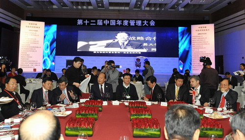 2012年11月30日,由《英才》雜志發起,聯合新浪網、北京青年報等主流媒體共同舉辦的2012(第十二屆)中國年度管理大會在北京隆重召開。國際貿易談判代表、商務部黨組副書記、副部長高虎城,國務院國資委副主任邵寧,國家安全生產監督管理總局局長、黨組書記楊棟梁,科技部黨組書記、副部長王志剛等政府領導出席本次大會。作為重要嘉賓,天獅集團李金元董事長應邀出席大會開幕式,并作為貴賓參加VIP午宴。