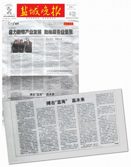 繼2013年1月9日《鹽阜大眾報(bào)》刊載束昱輝董事長(zhǎng)專訪報(bào)道《不求利潤(rùn),求未來》之后,2013年1月15日,與《鹽阜大眾報(bào)》同屬鹽阜大眾報(bào)報(bào)業(yè)集團(tuán)旗下的另外一份生活類刊物《鹽城晚報(bào)》又以近二分之一版的篇幅刊載了束昱輝董事長(zhǎng)親自執(zhí)筆的《搏擊“藍(lán)海”贏未來》一文,通過對(duì)自己十?dāng)?shù)年來不吝艱辛遍尋民間中藥秘方,從而最終成就了“權(quán)健”今時(shí)今日行業(yè)領(lǐng)袖地位的整個(gè)過程的回顧和總結(jié),彰顯出了一位胸懷大志和謀略的成功企業(yè)家傲視商圈的遠(yuǎn)見卓識(shí)。