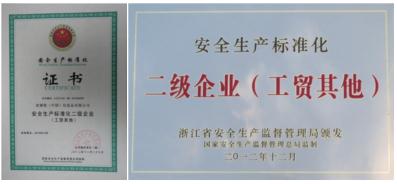 經過亞太生產中心全體人員半年多的努力,于2012年12月18日通過了浙江省安全生產監督管理局驗收專家組的驗收審核,獲得國家安全生產標準化二級企業證書及榮譽牌匾。