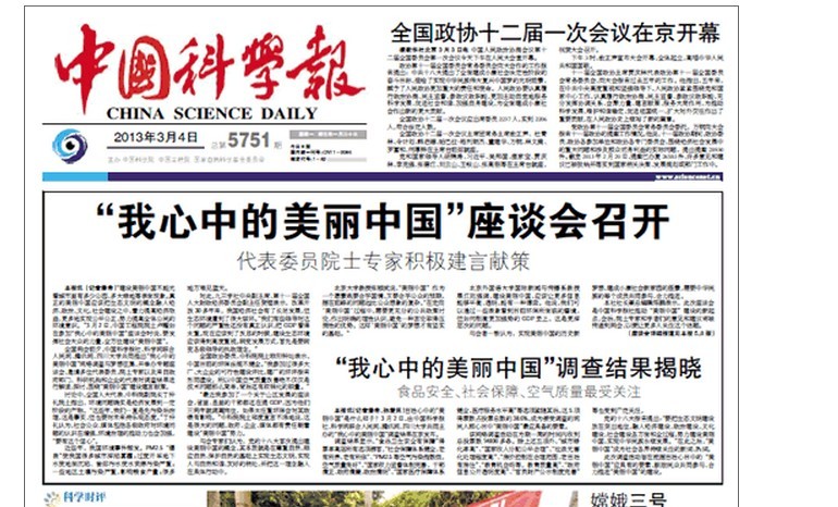 座談會上,受邀參會的多位代表委員、院士專家以及來自政府部門、科研機構和企業的代表對調查結果進行解讀、探討,圍繞“美麗中國”建設暢所欲言。之前,主辦單位舉行了為期一周的“我心中的美麗中國”網絡調查與夢想征集活動。調查結果顯示,“食品衛生安全有保障”得票率高居所有選項榜首。