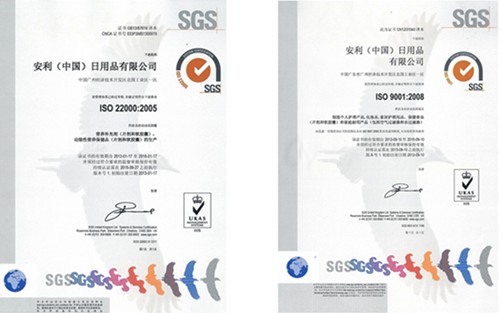 ISO9001是安利工廠質(zhì)量管理體系的基石,ISO22000是安利工廠重要的食品安全管理體系,兩項(xiàng)認(rèn)證表明安利具有嚴(yán)格的質(zhì)量管控體系和食品安全保障體系,從產(chǎn)品的研發(fā)、原料遴選、生產(chǎn)流程等各個(gè)環(huán)節(jié)都執(zhí)行國(guó)際通行的標(biāo)準(zhǔn)。安利公司分別于1995年和2009年獲得這兩項(xiàng)認(rèn)證,為了始終保持嚴(yán)格的標(biāo)準(zhǔn),始終為消費(fèi)者提供優(yōu)質(zhì)安全的產(chǎn)品,每到一定年限,都會(huì)重新申請(qǐng)認(rèn)證。