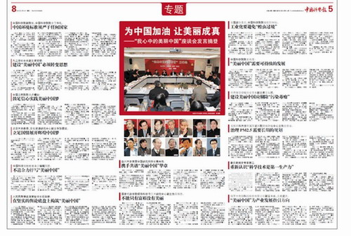 座談會上,武慶總裁與全國人大代表、中國科學院副院長丁仲禮,第十一屆全國人大財經委員會副主任委員、九三學社中央副主席賀鏗,全國政協委員、中國科學院院士歐陽鐘燦,中國科學院院士、自然地理學家鄭度,中國工程院院士、工程地質、水文地質與環境地質學家盧耀如、北京大學教授張頤武等一起,就“美麗中國”這個熱門話題熱烈討論。