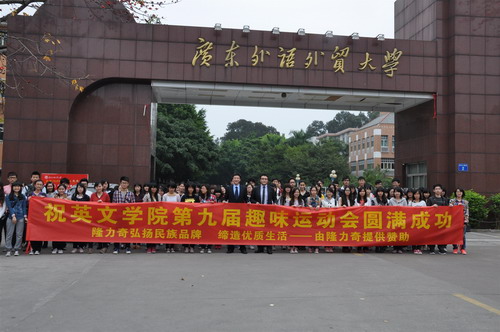 3月14日,由民族日化領(lǐng)軍企業(yè)隆力奇贊助的廣外英文學(xué)院第九屆趣味運(yùn)動(dòng)會在廣東外語外貿(mào)大學(xué)體育場隆重開幕。隆力奇公司廣東分公司員工代表到場助威,并為英文學(xué)院學(xué)子送上價(jià)值數(shù)萬元的隆力奇產(chǎn)品。