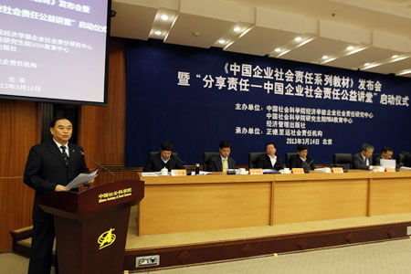 3月14日上午,由中國社會科學院經濟學部企業社會責任研究中心(中國企業社會責任領域唯一的國家級研究中心和最高理論平臺)、中國社會科學院研究生院MBA教育中心、經濟管理出版社主辦的中國企業社會責任領域的第一本應用教材——《中國企業社會責任系列教材》發布會在中國社會科學院學術報告廳隆重舉行,新時代健康產業集團總經理黃永剛先生應邀出席了發布會。