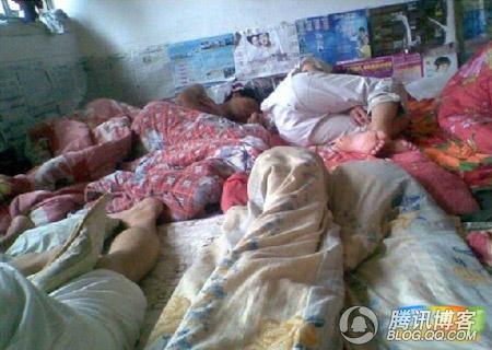 被子都摞的很整齊。。手法都一樣。有的十幾個男人睡一起,夏天熱的要死,冬天擠的翻身都翻不了。