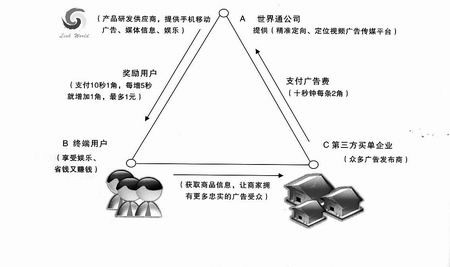 人們看廣告掙大錢的原動(dòng)力來(lái)自哪里呢?今年2月末,記者在鄭州某酒店參加了培訓(xùn)課。從老師的講課中得知,世界通經(jīng)營(yíng)模式采用的是北大經(jīng)濟(jì)學(xué)教授王建國(guó)“第三方埋單”的“IP理論”。企業(yè)在媒體上做廣告,有多少人看企業(yè)并不知道,而世界通的軟件解決了廣告無(wú)效投放的問(wèn)題,每看一次廣告、誰(shuí)在看、在哪里看系統(tǒng)都有記錄,企業(yè)根據(jù)點(diǎn)擊廣告的次數(shù)付款,世界通則將廣告收入的一半返利給真正看廣告的人,從而保障了消費(fèi)者利益。