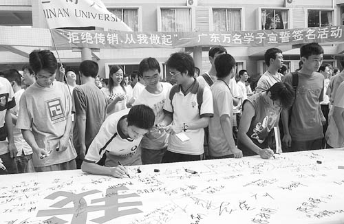 廣州萬名大學(xué)生簽名宣誓拒絕傳銷